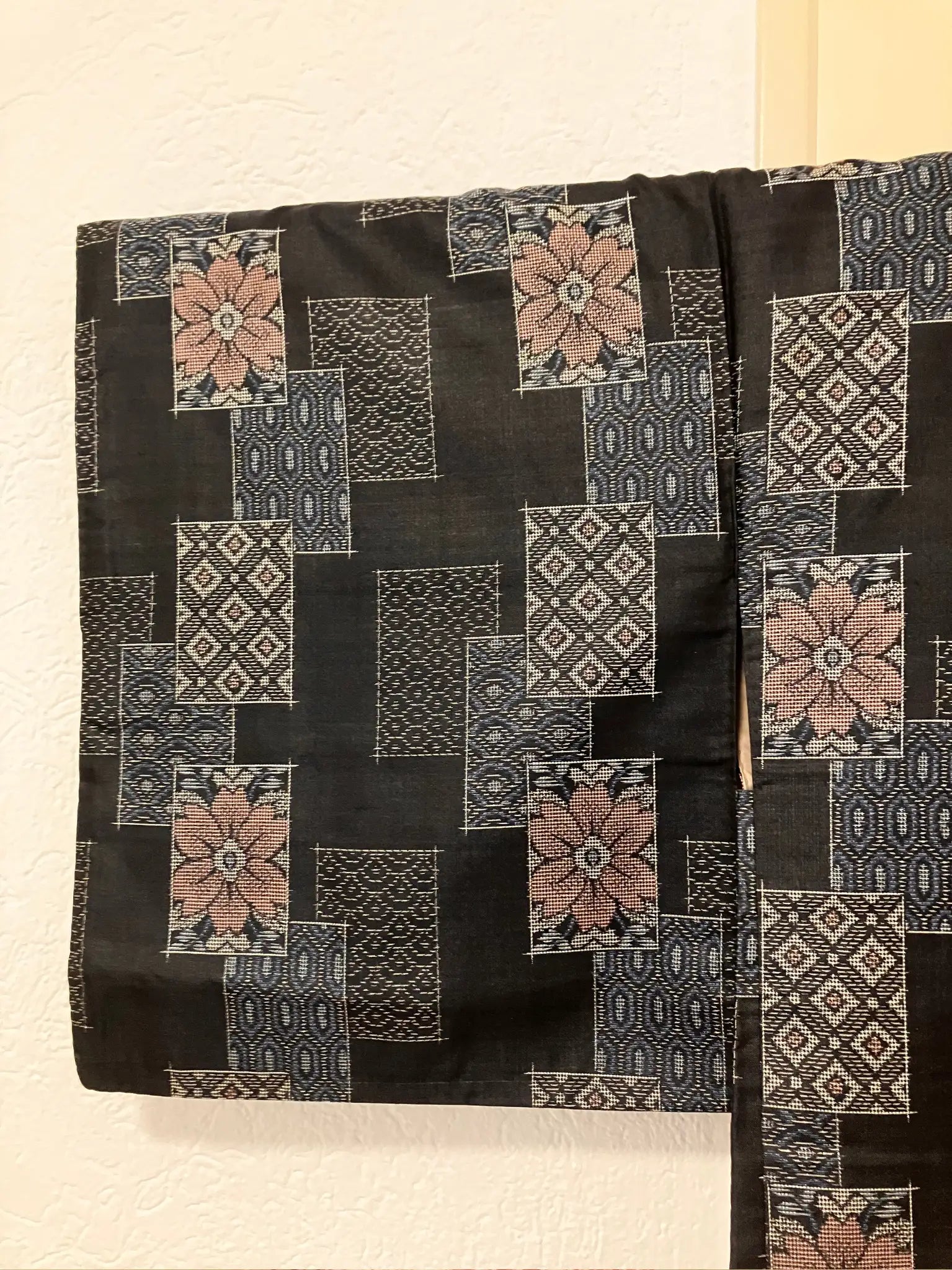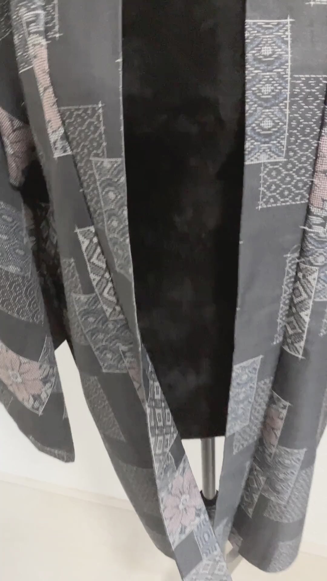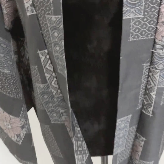 Es wird angenommen, dass dieser Haori sehr berühmt ist Ōshima Tsumugi (Da es sich allerdings um ein Vintage-Stück handelt, gibt es kein Zertifikat, das dies bestätigt). Es wurde in den wärmeren Regionen Japans hergestellt.