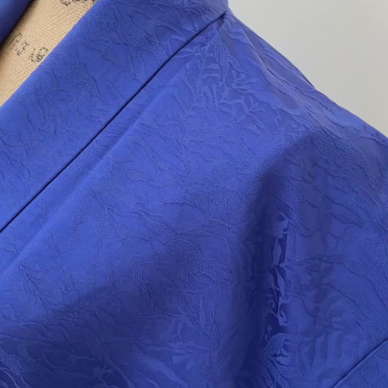 Der dicht gewebte Stoff hat eine jacquardartige Textur, die seine komplizierten Muster im Licht wunderschön zur Geltung bringt und ihm ein Gefühl von Tiefe und Raffinesse verleiht.