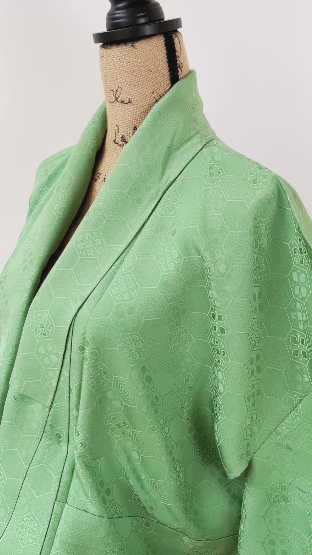 Vintage Iromuji Kimono – Frisches junges Grasgrün – Halleluja original arrangiert