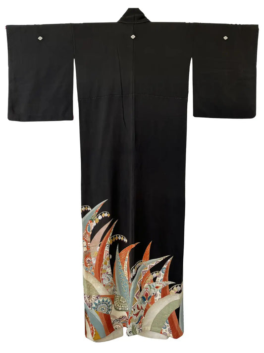 Vintage schwarze Tomesode - Orientalisches Maiglöckchen -