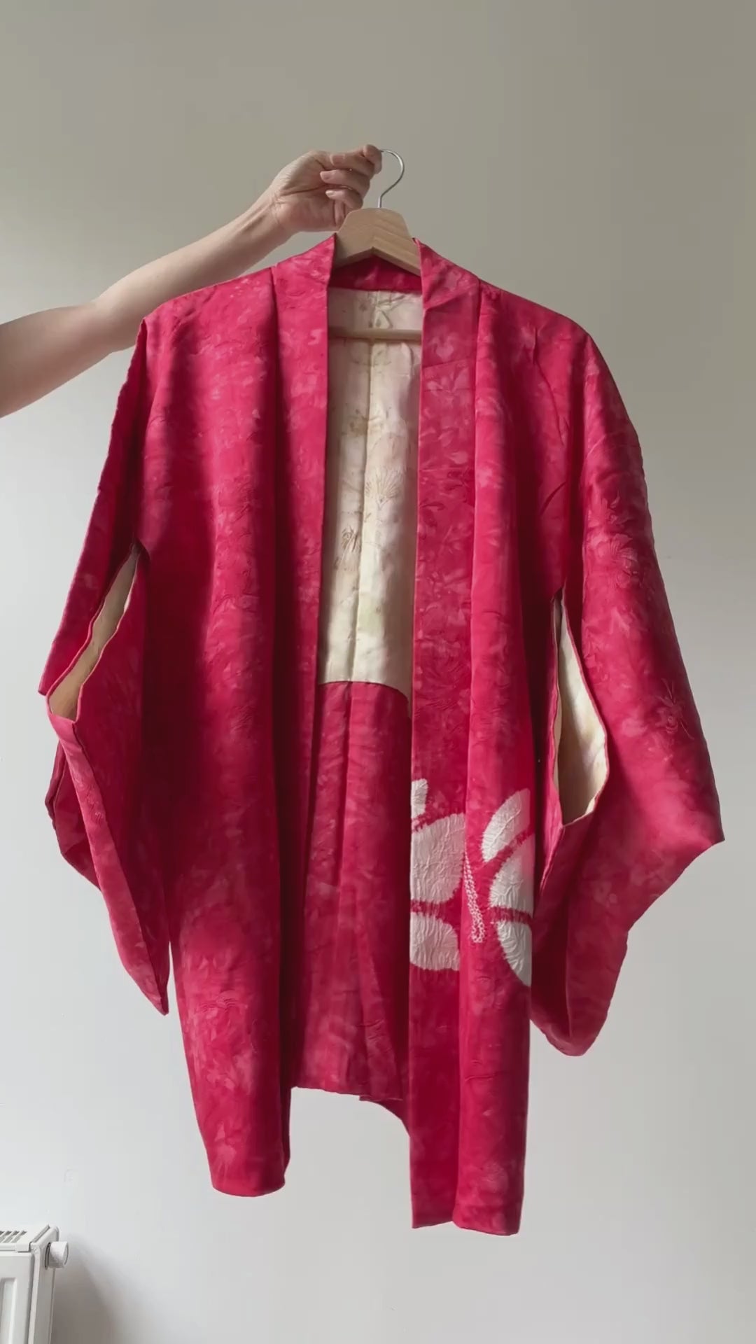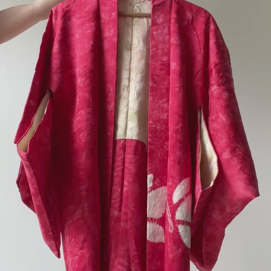 The use of shibori (tie-dye) technique for the butterfly motif is extremely rare, making this haori a true collector’s item.