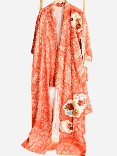 La plus haute qualité 【Furisode】<Bonne・Soie>★orange passionnée entièrement distillée★Longueur : 160 cm/manchette à manchette 143 cm