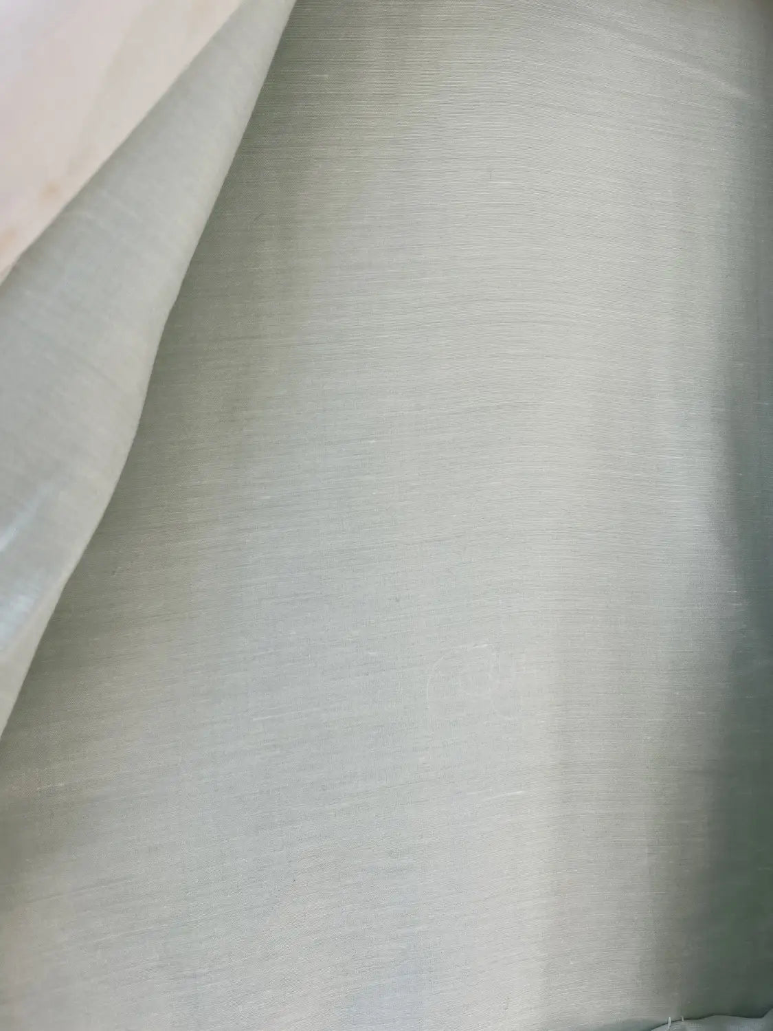 Le tissu extérieur en soie est dans l'ensemble en très bon état, mais il y a quelques taches et marques par endroits.