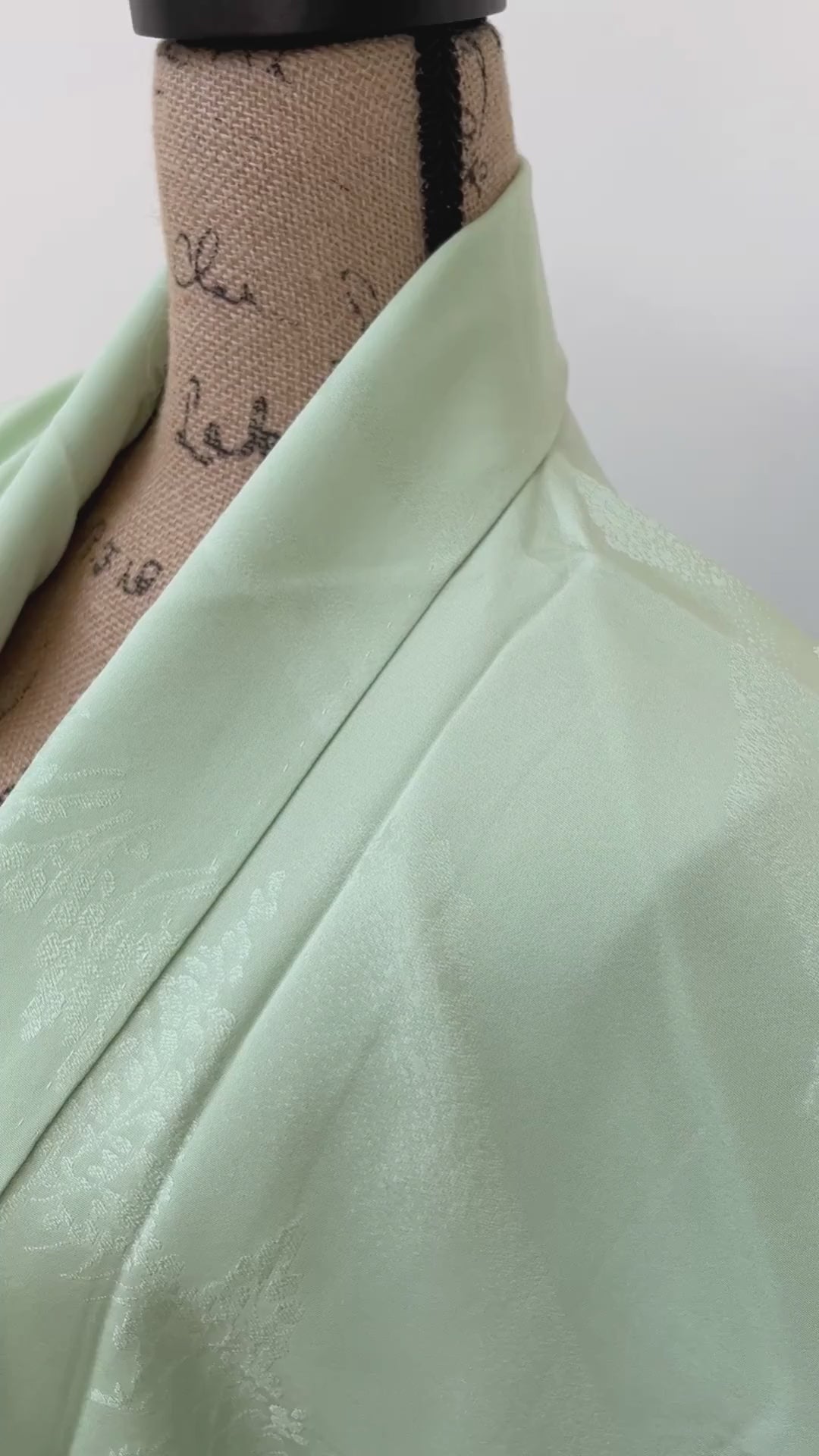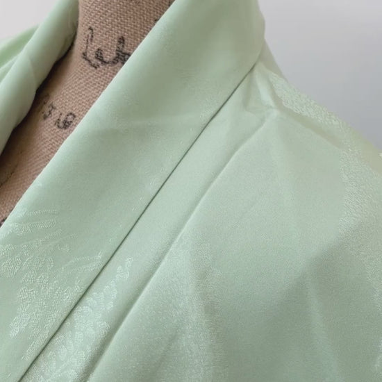 Ce haori est réalisé dans un tissu vert clair d'un bel éclat, et sa texture douce permet d'apprécier pleinement l'excellence de la soie japonaise. La couleur vive donne une sensation joyeuse et inspirante.