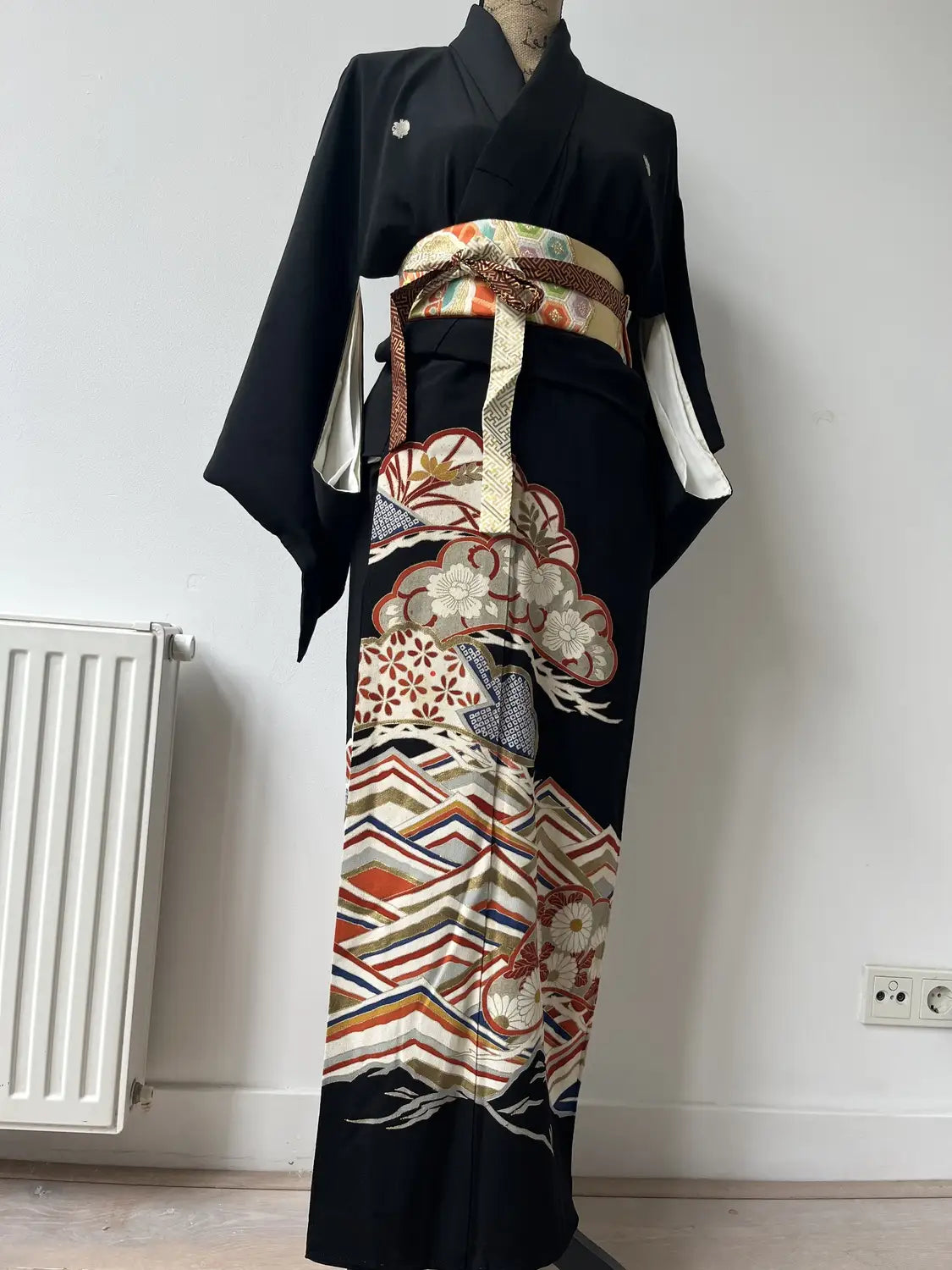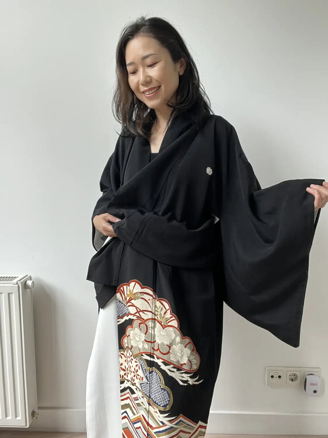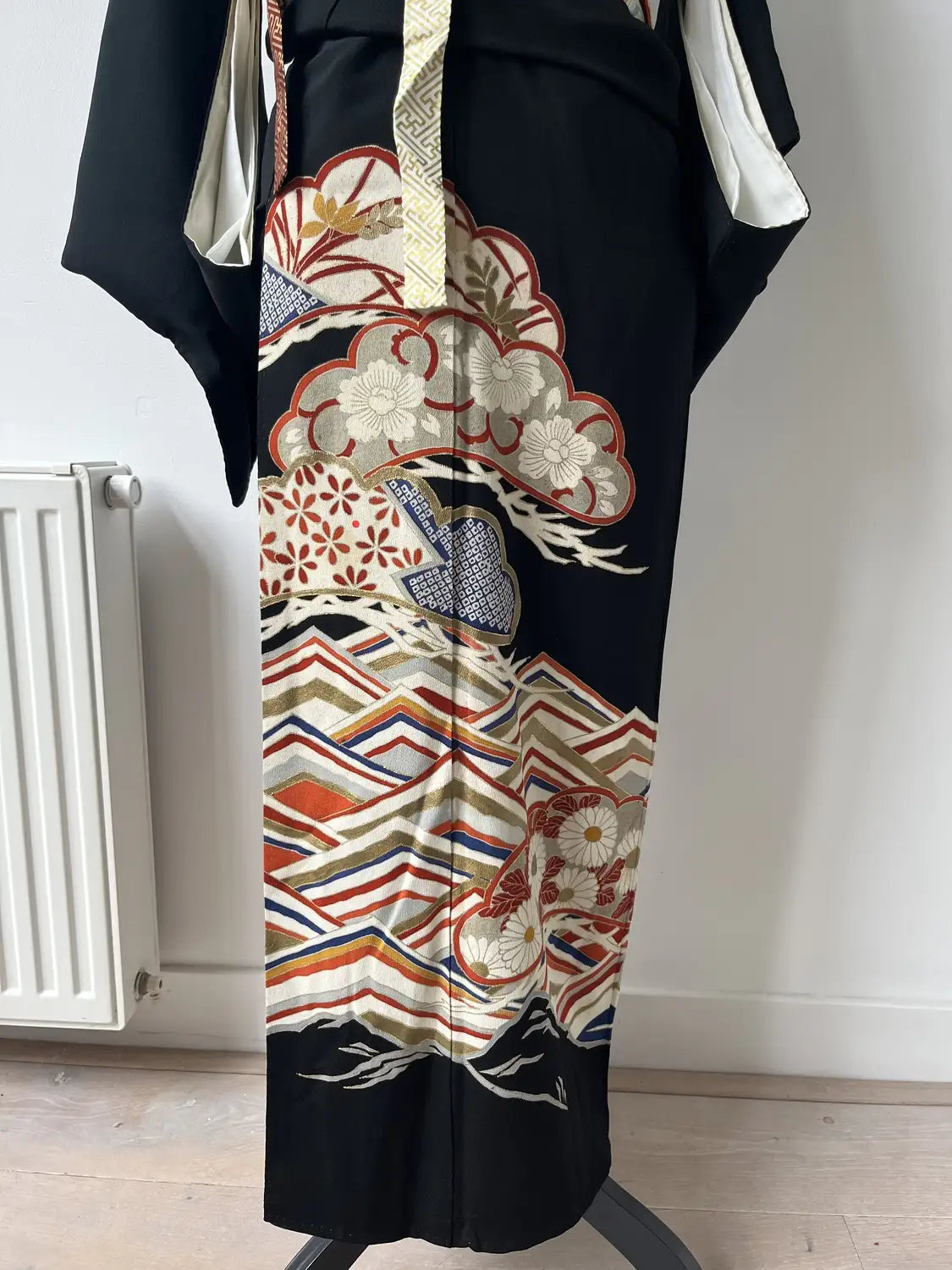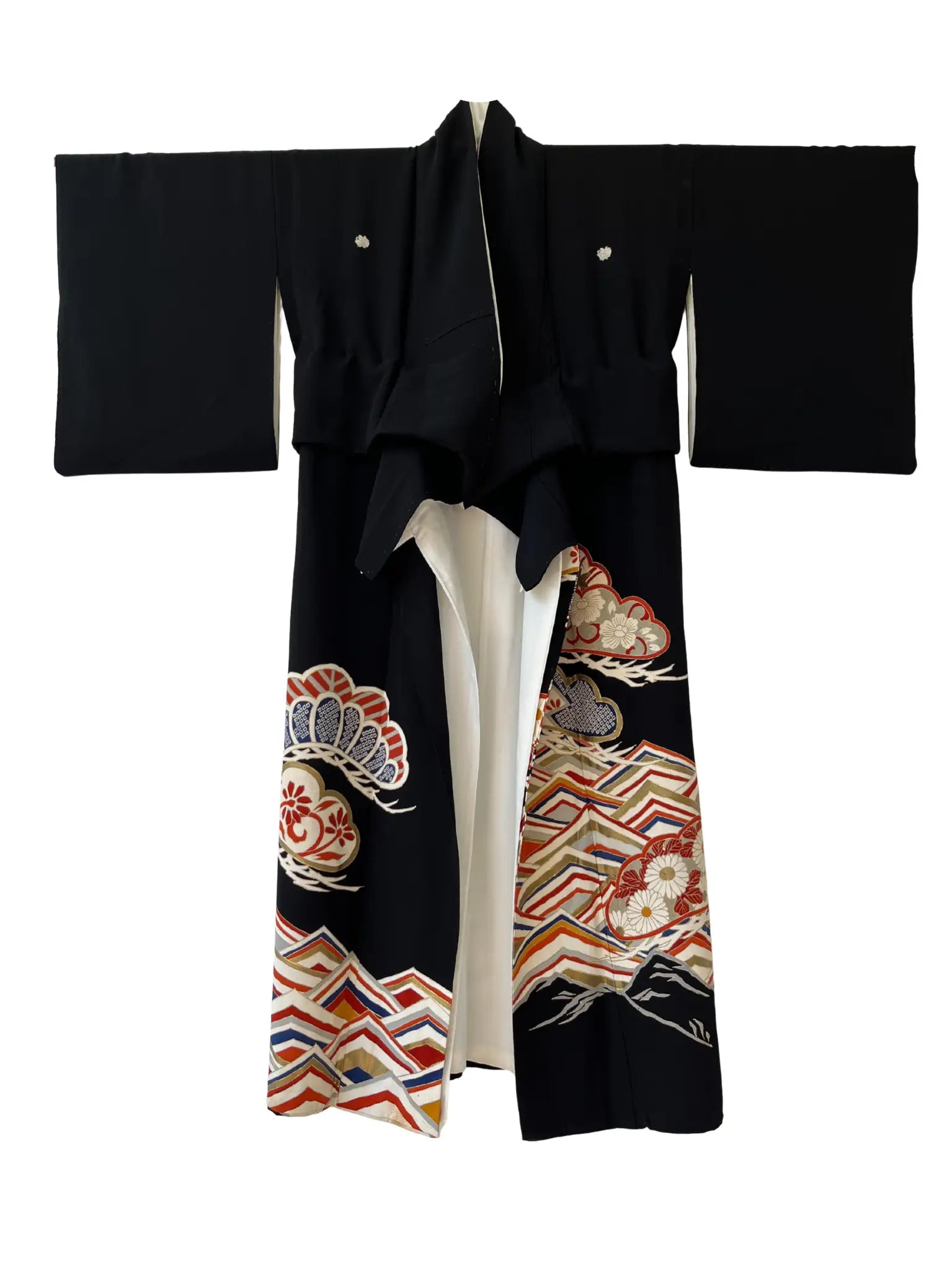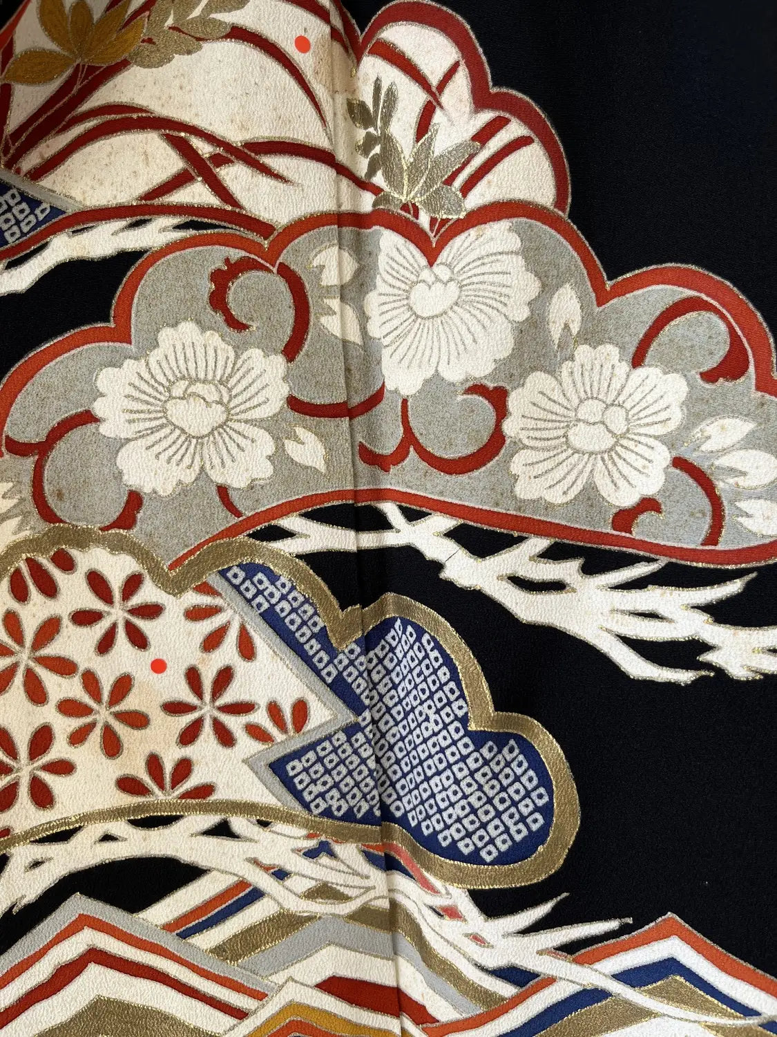 tomesode noir vintage - Pine and Ocean Waves -Hallelujah arrangement original