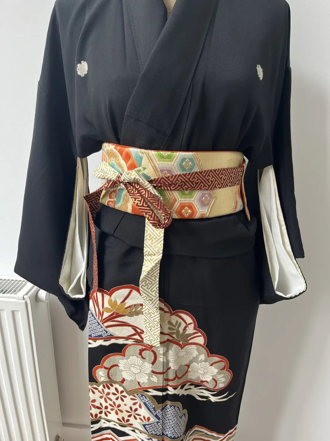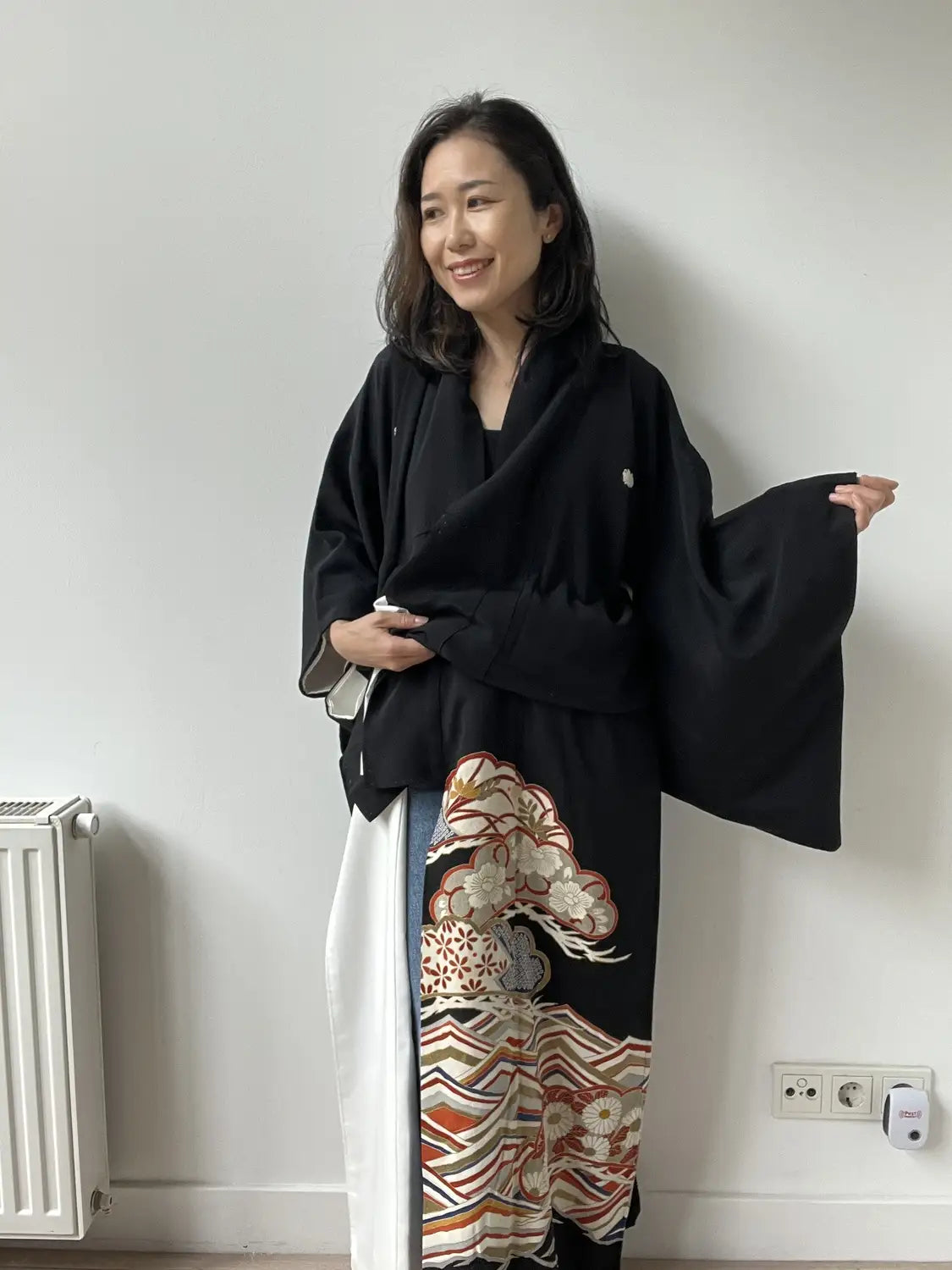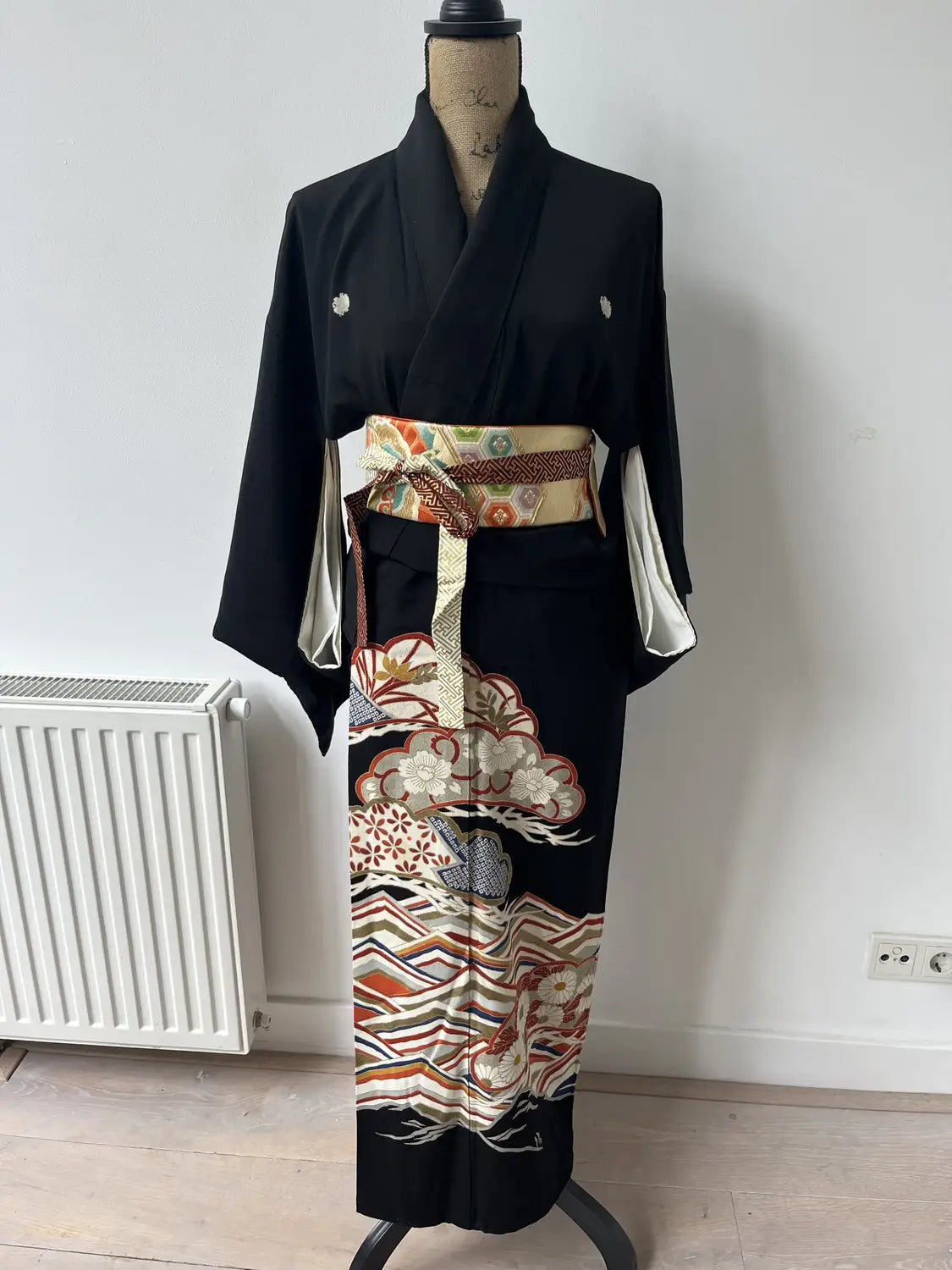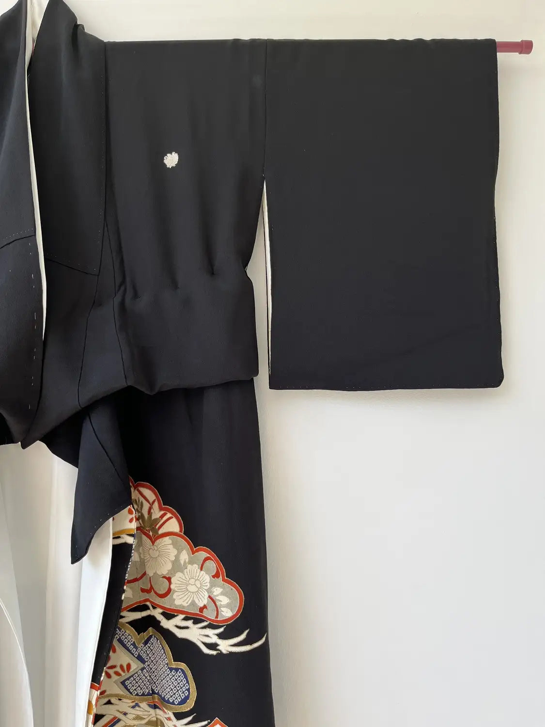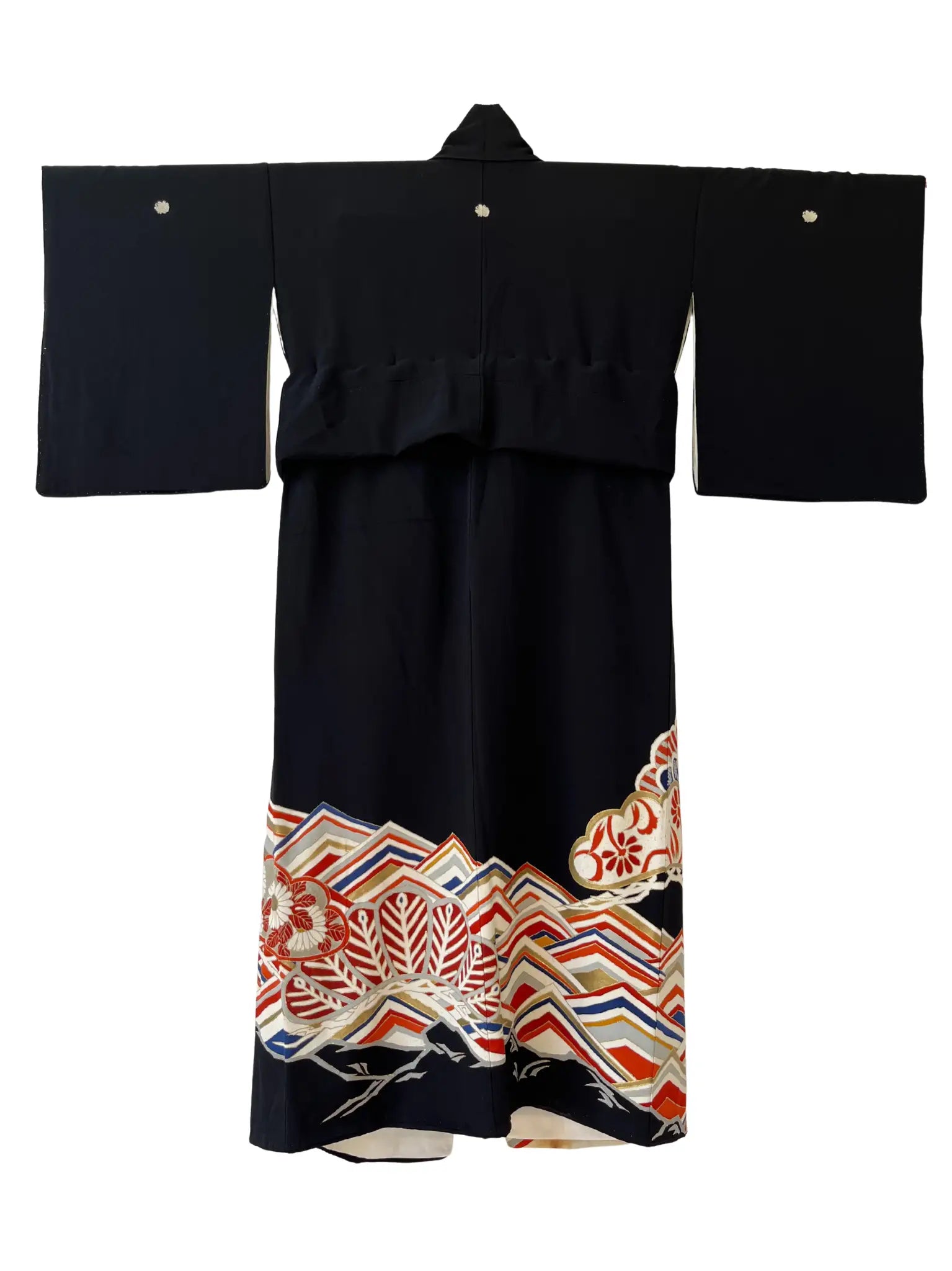 tomesode noir vintage - Pine and Ocean Waves -Hallelujah arrangement original