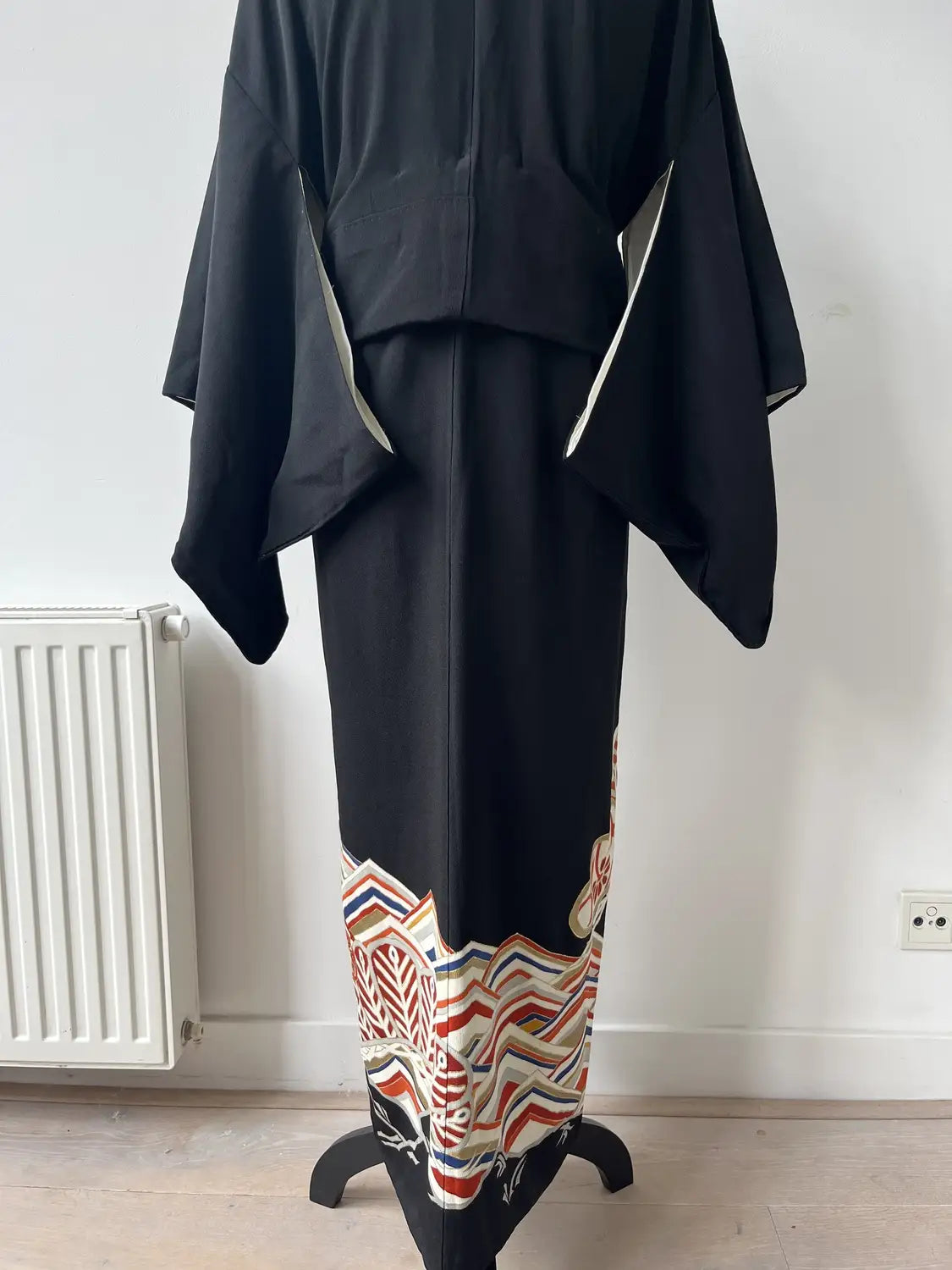 Ensemble, ces deux motifs créent un design dynamique et impressionnant. Ce n'est pas seulement un kimono mais aussi une œuvre d'art, vous permettant de profiter d'un design qui remonte à plus de 50 ans.