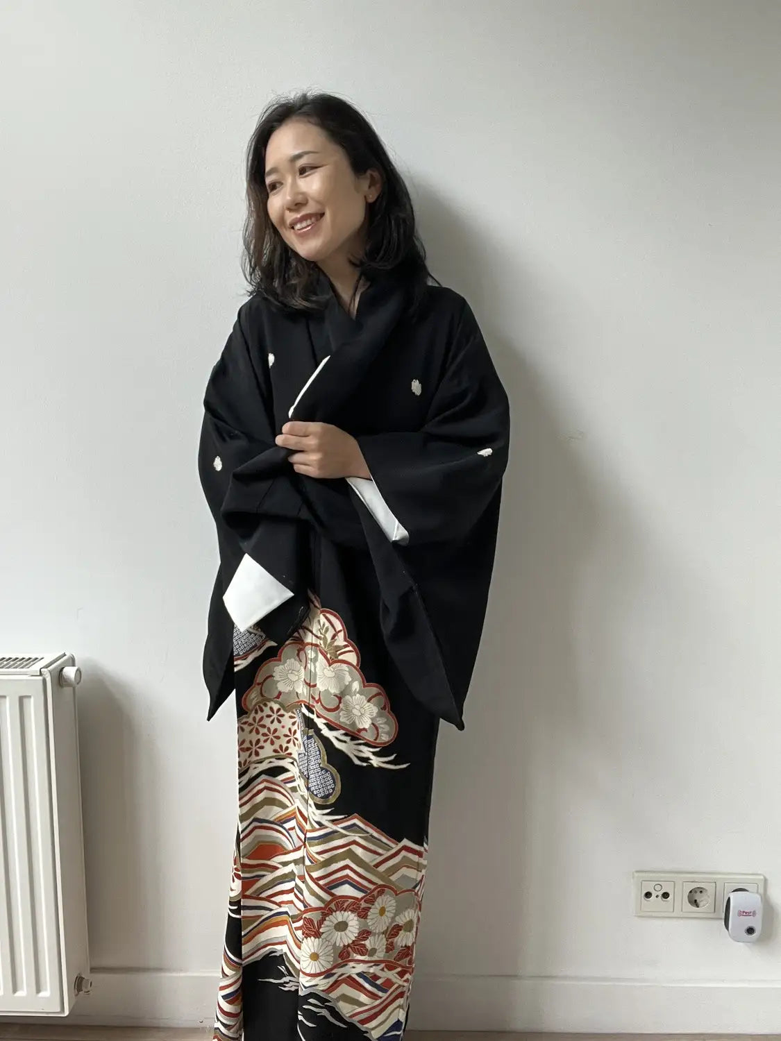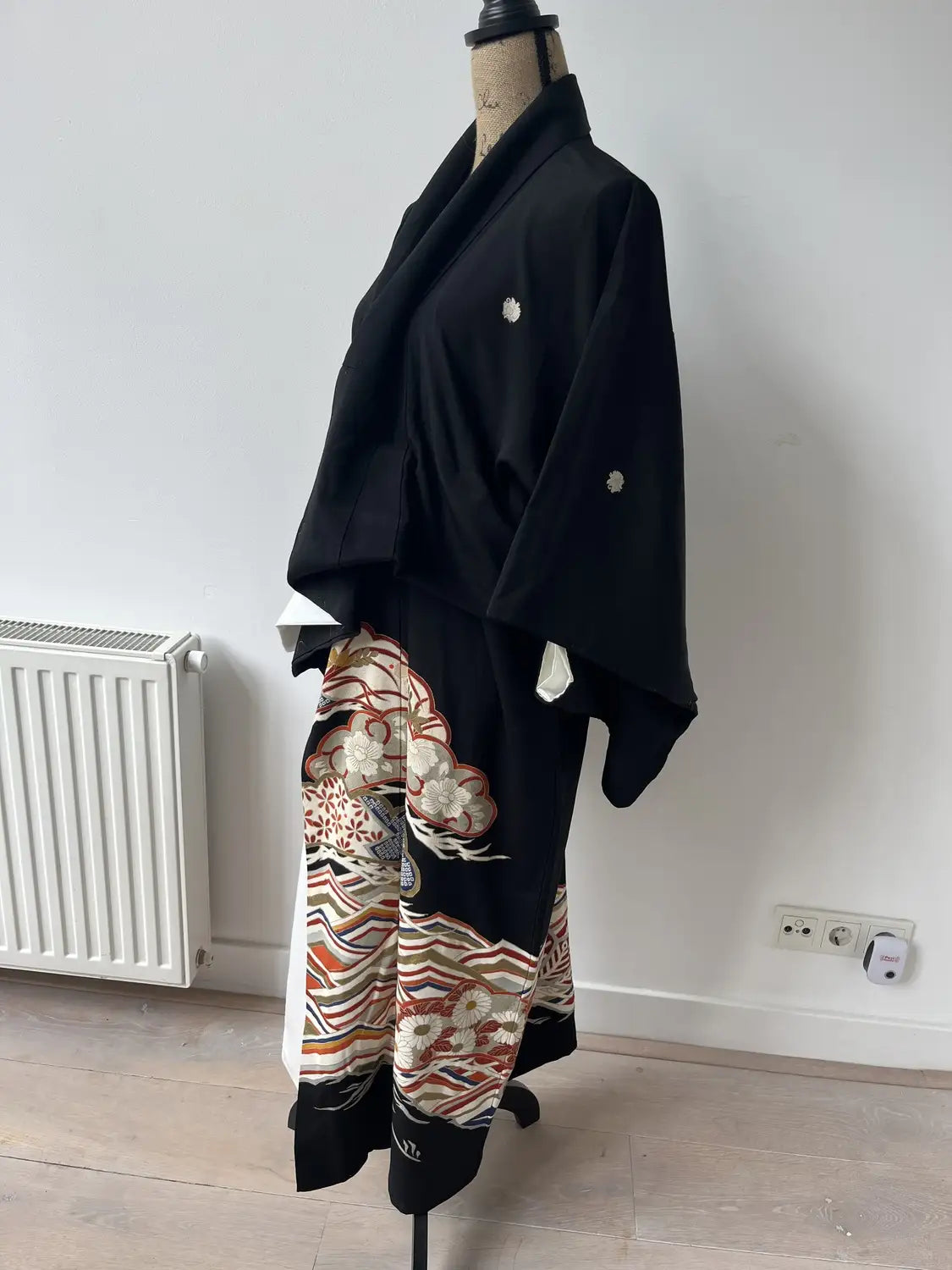 C'est un kurotomésode, le kimono le plus formel traditionnellement porté par les femmes—