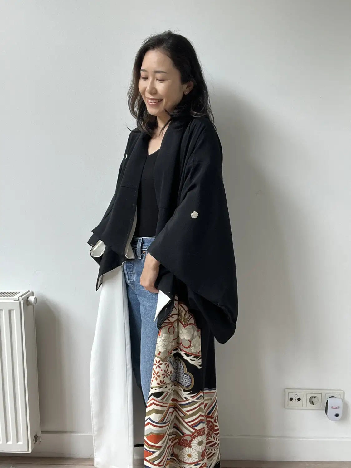 Qu'il soit porté comme un manteau long, une robe ou comme un kimono formel, c'est un vêtement polyvalent et intemporel.
