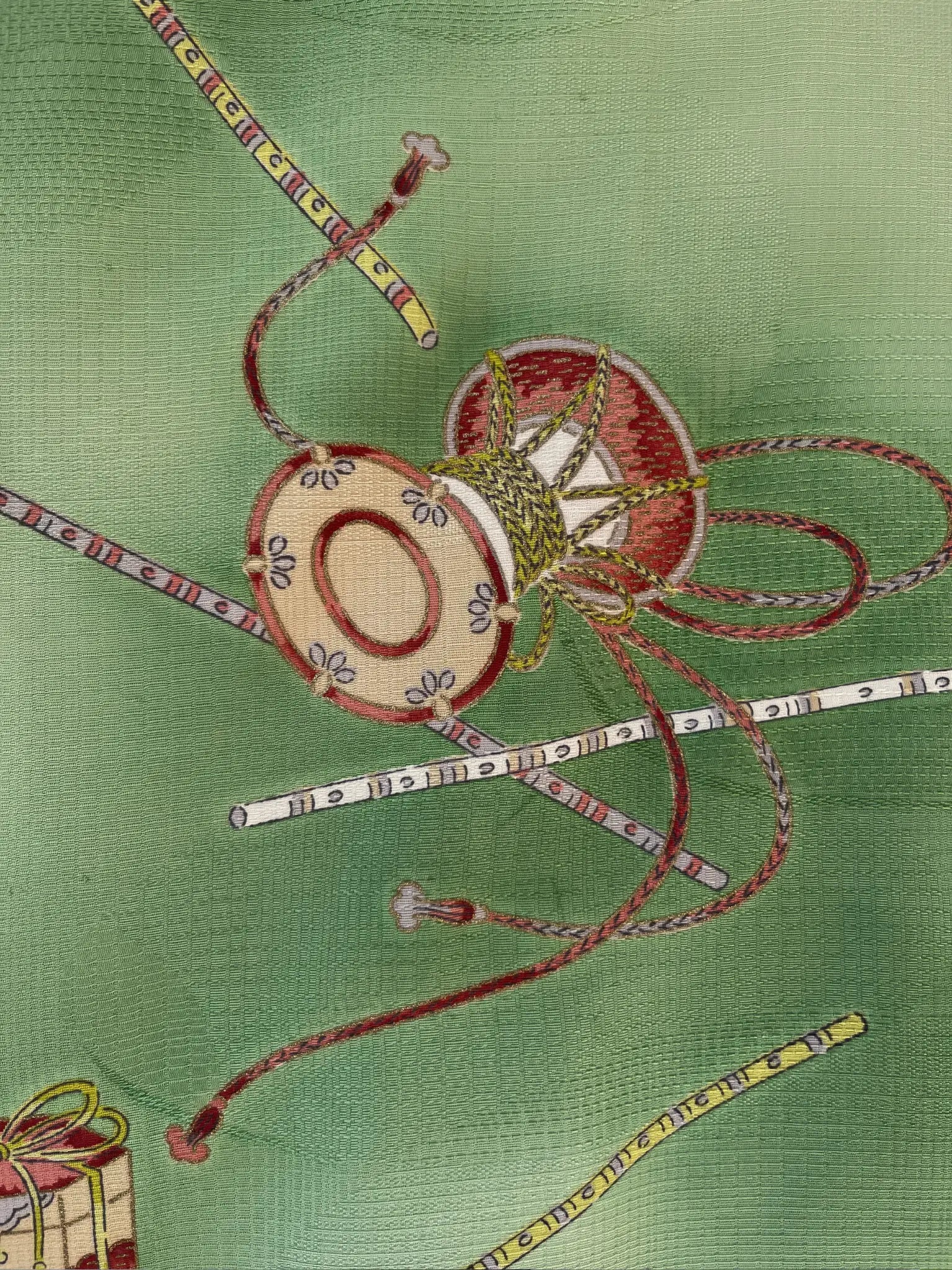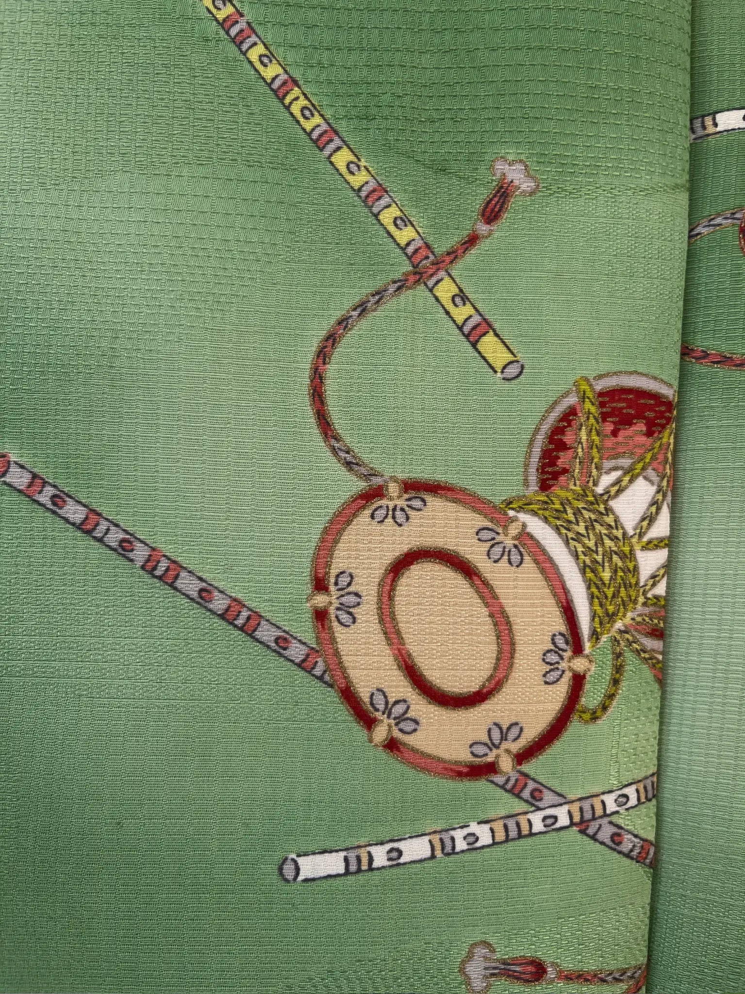 Dit is een haori met een zeer zeldzaam Japans muziekinstrumentenpatroon.
