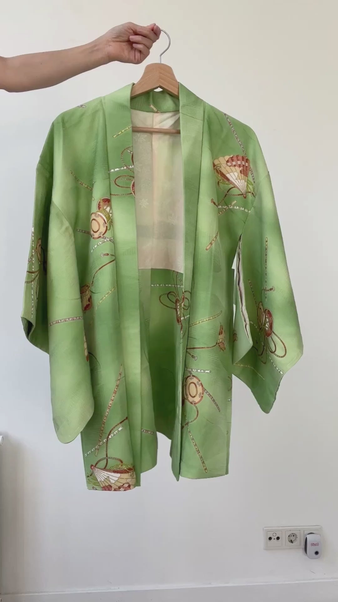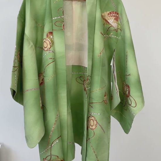 Vintage kleur Haori - Groene Tsuzumi muziekinstrument -