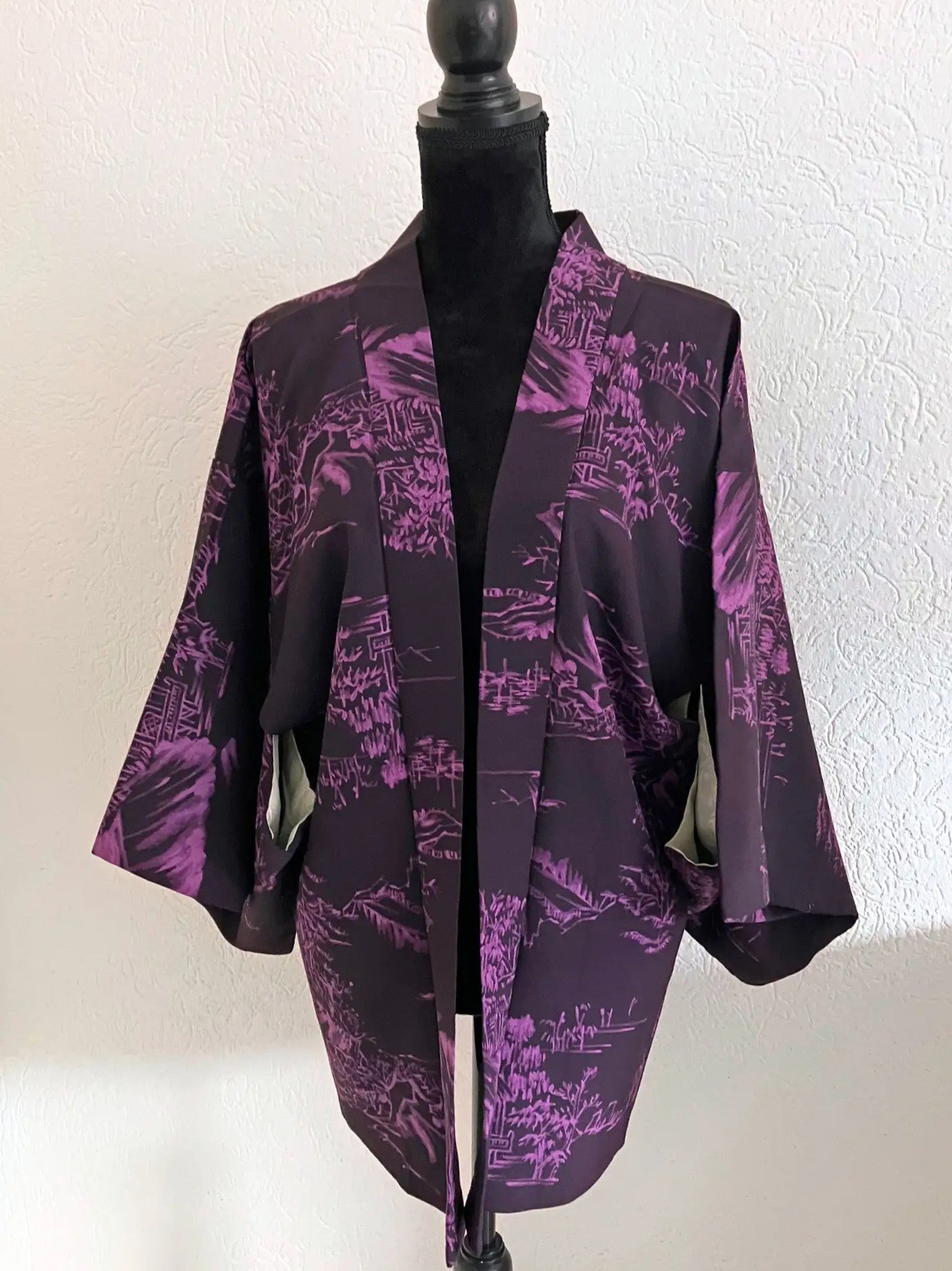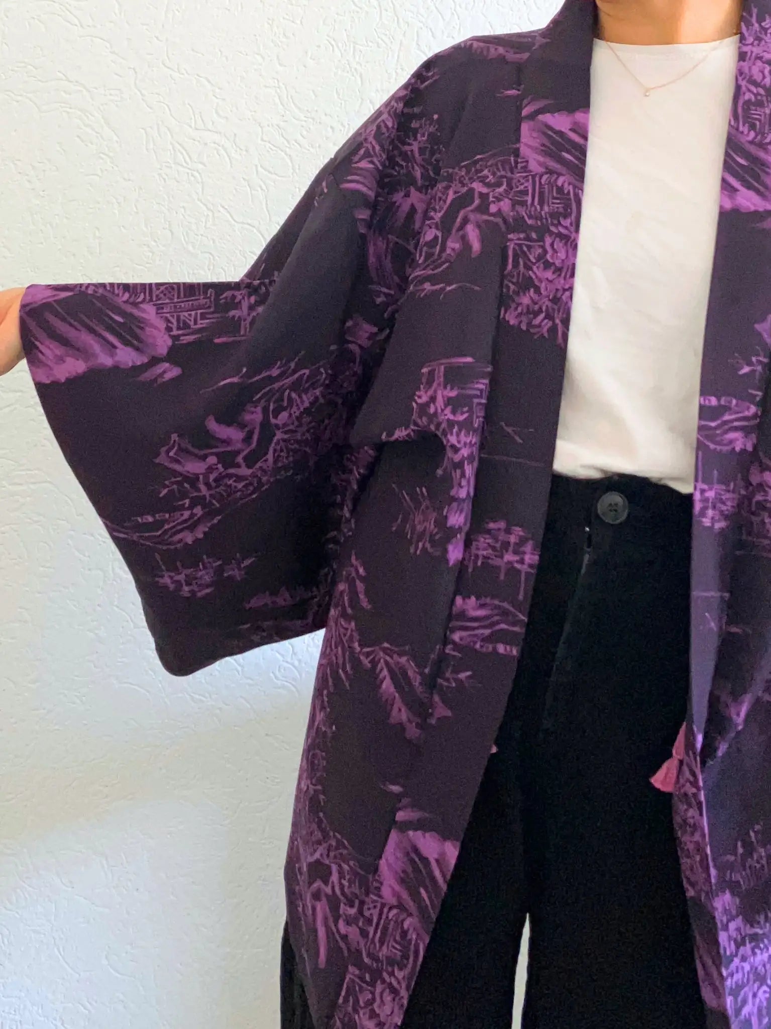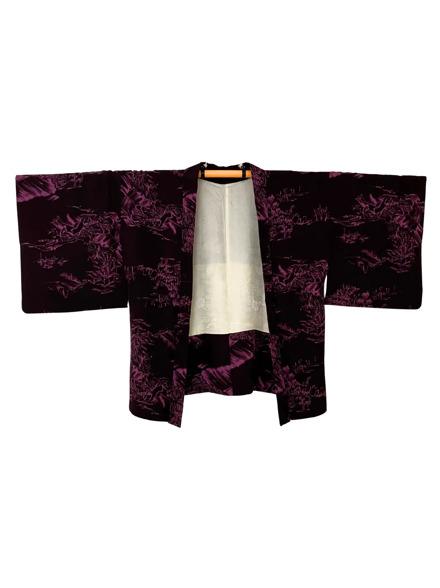 Vintage Color Haori - Purple Old Japanese Mountain Village House-