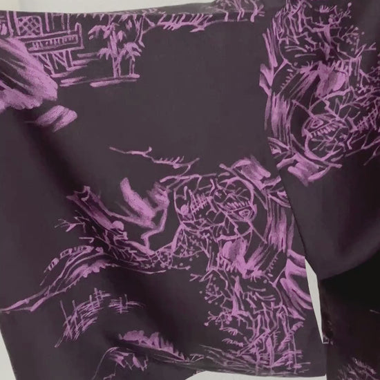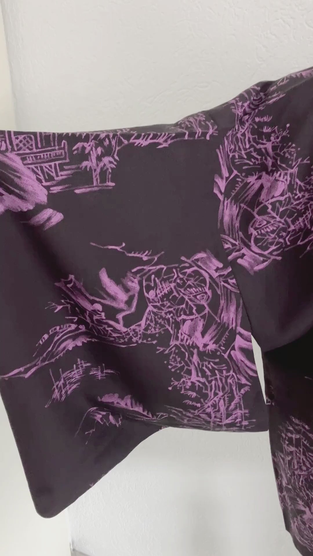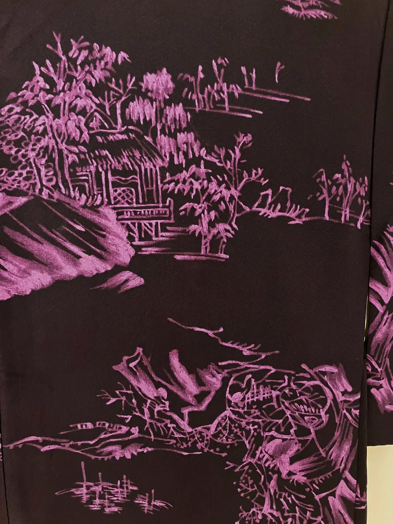 This haori features a stylish and emotive Japanese landscape design in shades of purple. The sleek, smooth texture of the silk gives it a refined, high-quality feel, elevating any outfit with effortless elegance. The beauty of the stencil-dye technique and the sense of Japanese wabi-sabi make this a truly exceptional piece.