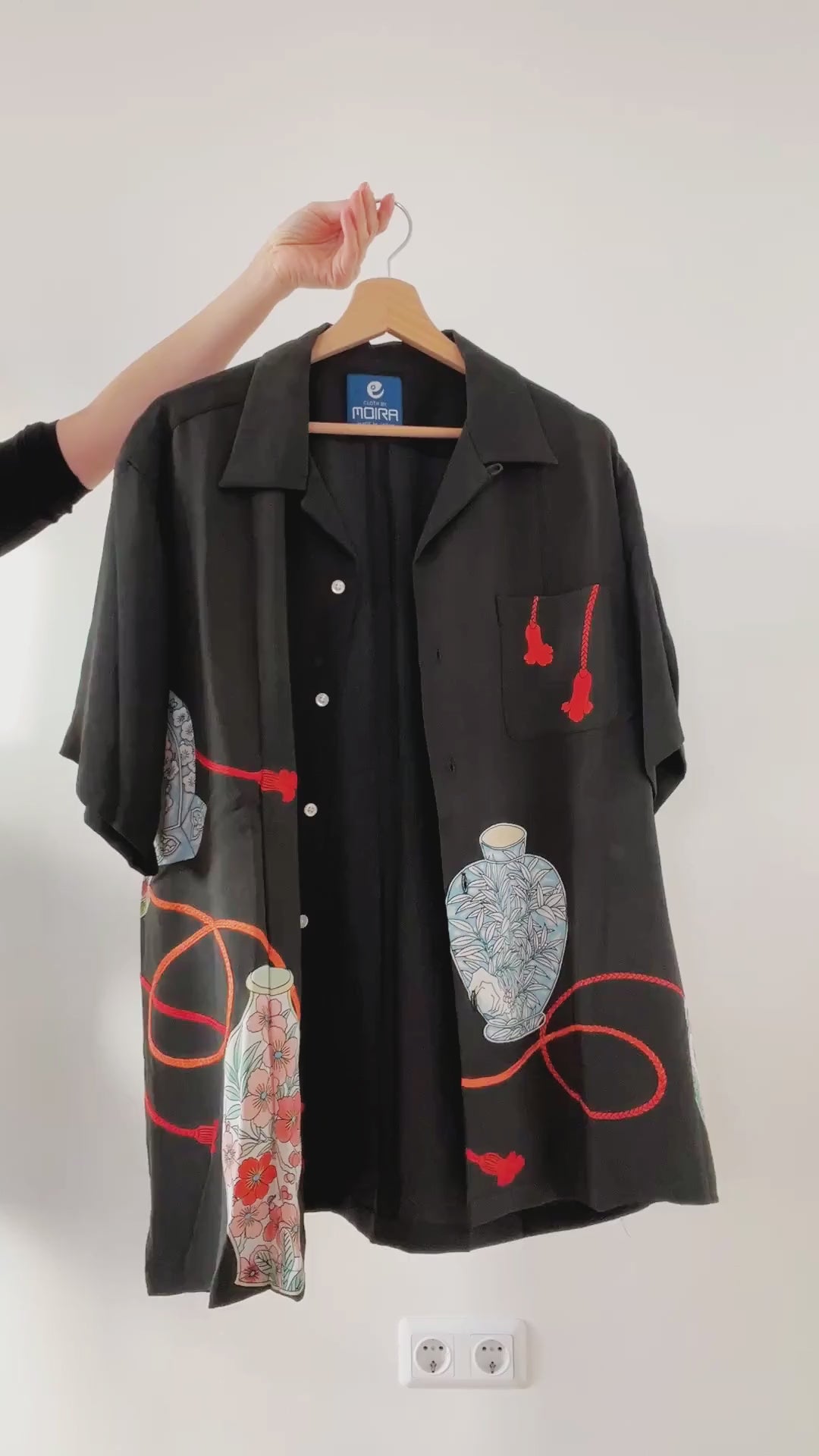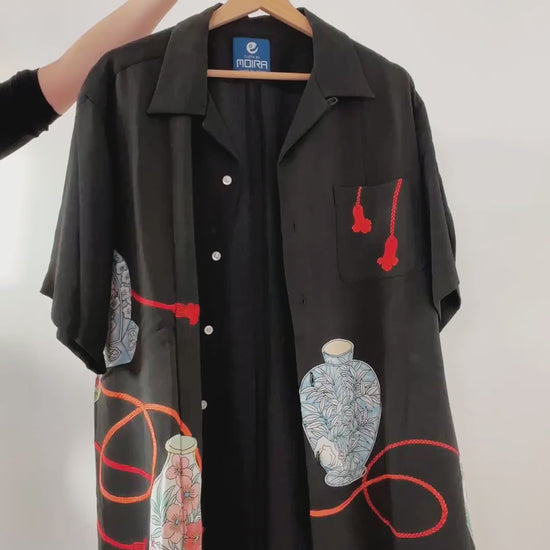 Kimono remake Hawaiian Shirt - Black Mystical Japanese Vase-