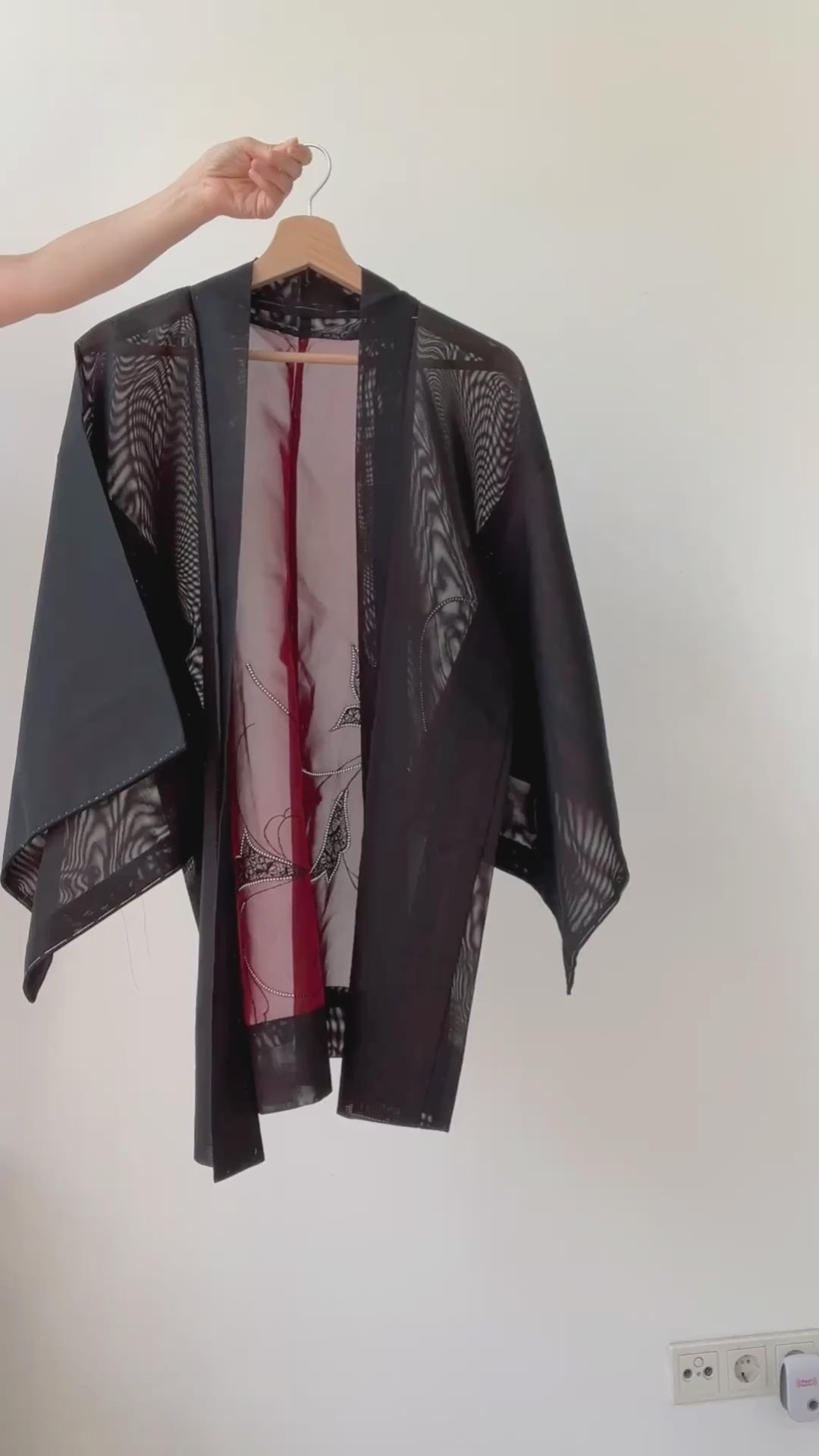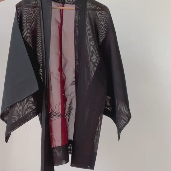 Vintage sheer haori - Black & Red -